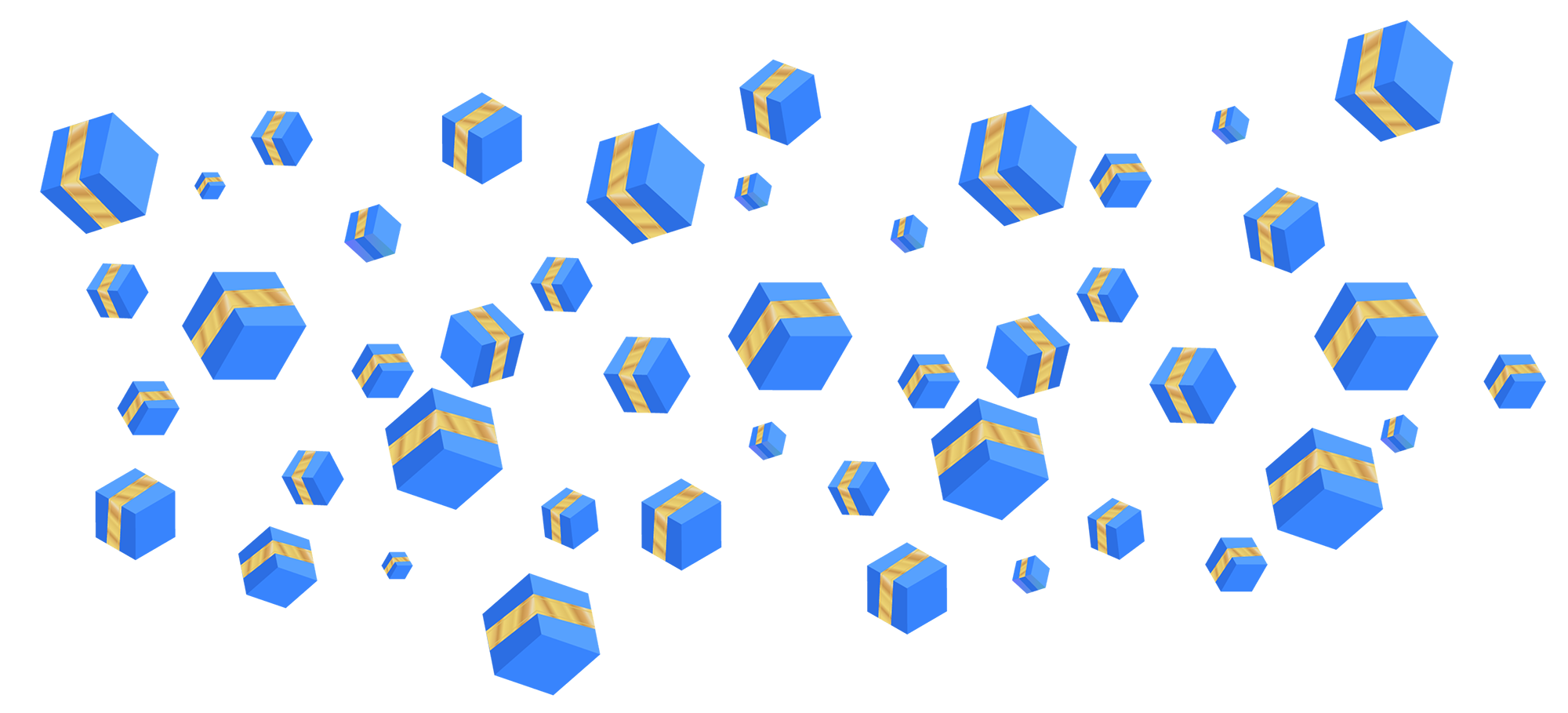 The answer is: Our logo turned into a blue gift box, filled in with a good deed!